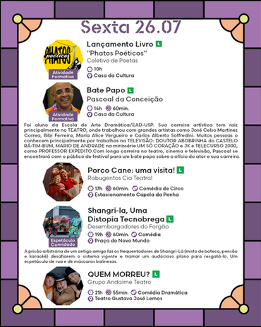 Além das apresentações, o evento ofereceu oficinas, rodas de conversa e encontros com artistas, proporcionando uma experiência enriquecedora tanto para o público quanto para os profissionais envolvidos.
